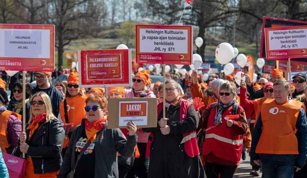 3.5.– 9.5.2022 oli kunta-alan historiallinen viikon lakko. Yhdistyksen aktiivit toimivat lakkovahteina ja yhdistyksemme toimitila oli Helsingin yhteisjärjestön yhteinen lakkokeskus, jossa muun muassa vastattiin päivystyspuhelimiin. Koko hallitus varajäsenet mukaan lukien päivysti vuorotellen lakkoemäntinä lakkokeskuksessa.