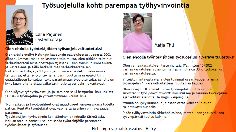 Olen ehdolla työntekijöiden työsuojelun 1.varavaltuutetuksi